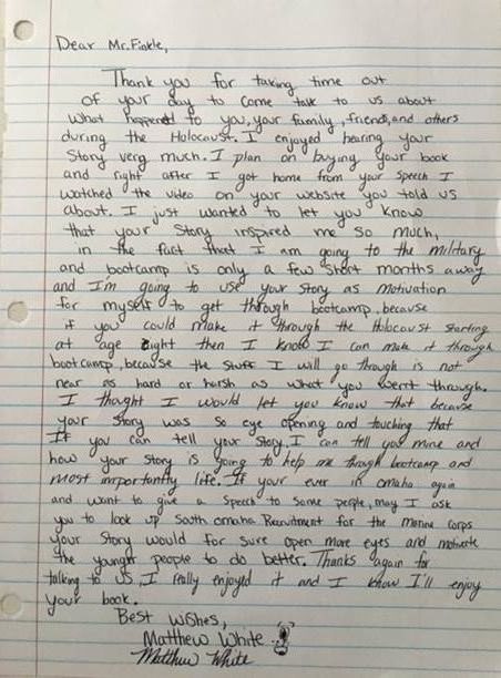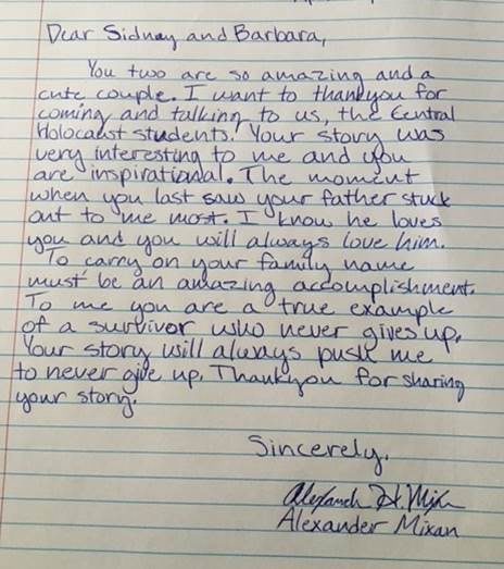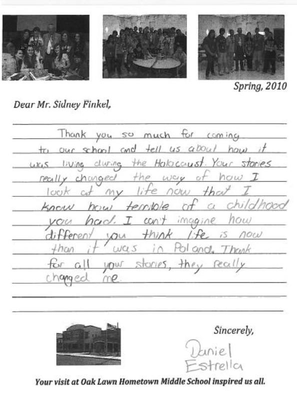 Letters from StudentsEmail Sidney at Sevek42@gmail.com to learn more about how he can assist you with Holocaust Education in your classroom. Share this: Click to share on Facebook (Opens in new window) Facebook Click to share on X (Opens in new window) X Click to share on Pinterest (Opens in new window) Pinterest Click to share on LinkedIn (Opens in new window) LinkedIn